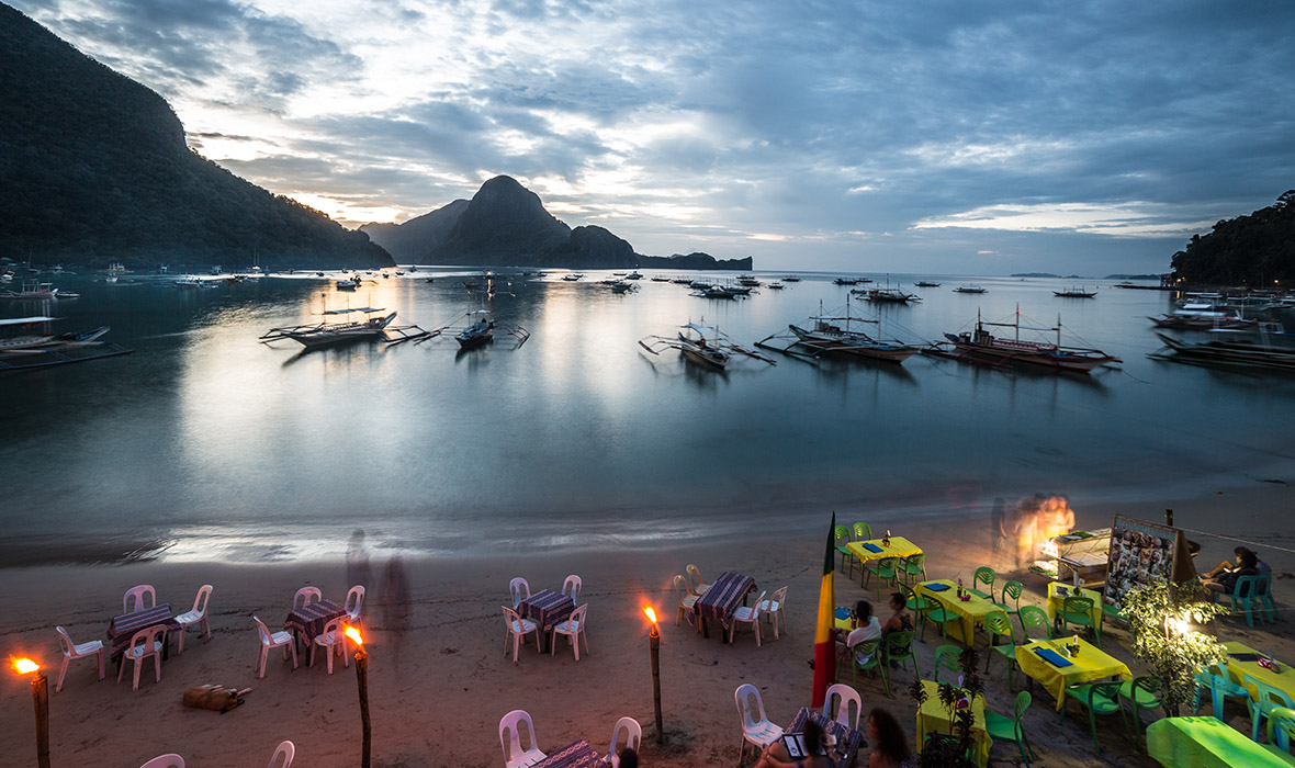 Venues like Pukka Bar and Happiness Beach Bar offer reggae tunes and casual elegance, while luxury resorts in the Bacuit Bay area curate private, candlelit dining on the sand.